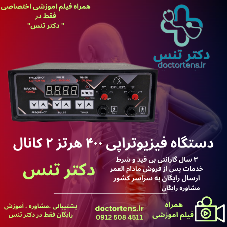 دستگاه فیزیوتراپی تنس درمانی400 هرتز 10 برنامه 2 کانال 4 پد